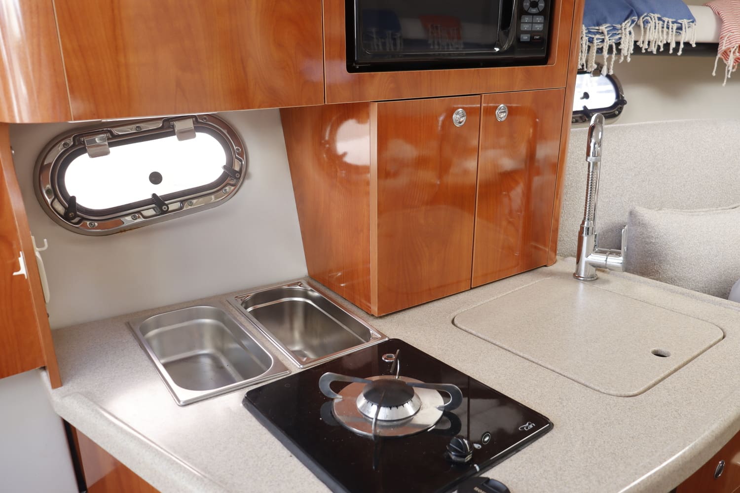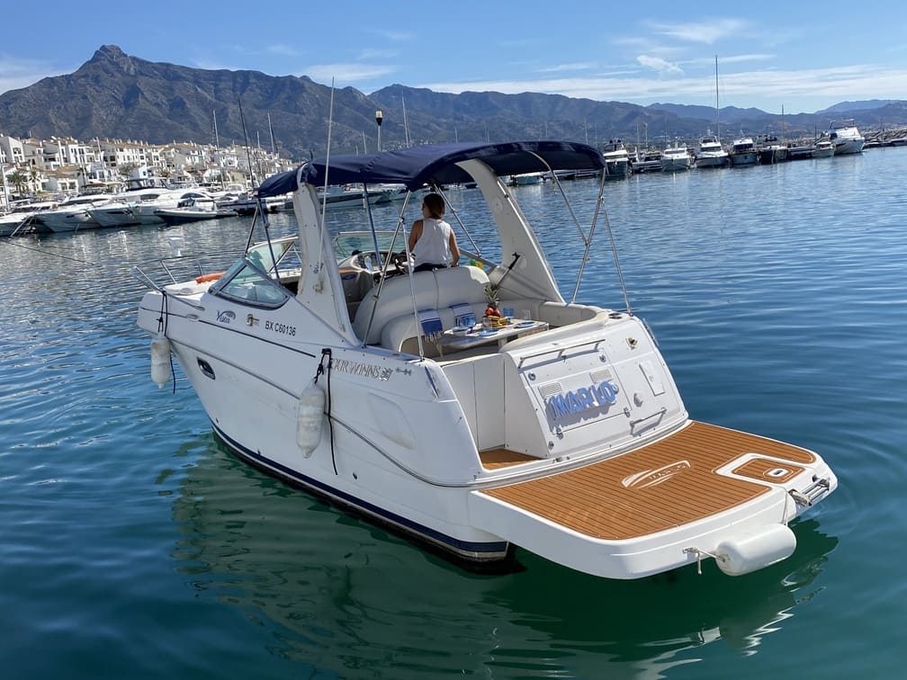 This yacht is the perfect choice to enjoy a day at sea with family or friends. Fully equipped inside and out. The Four Wins 268 offers a large bathing platform at the stern and a large sundeck at the bow where you can sunbathe and relax. It also has an interior cabin equipped with kitchen, dining area and bathroom. The price includes professional skipper, fuel, drinks and snorkel goggles.